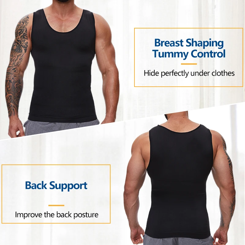 SHAPE YOUR BODY- This FAT BURNING ASSISTANT will hide "man boobs" very well, tighten "beer belly" in front, trim love-handles on sides, eliminate back fat, dramatically improve posture on the back with crisscrossing back panels.